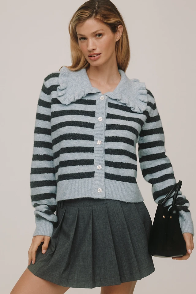 The Ainsley Ruffle-Collar Cardigan Sweater by Self Contrast