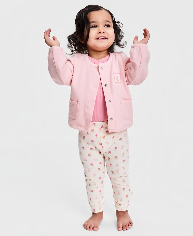 First Impressions Baby Girls' Cardigan, Bodysuit and Pants, 3-Piece Set, Macy's Exclusive