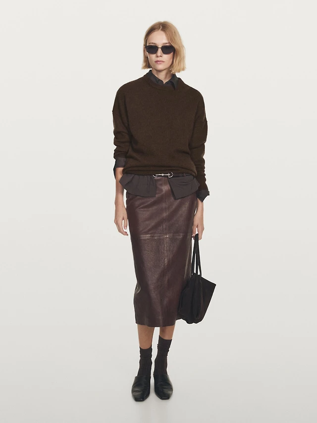 Mock Neck Ribbed Asymmetrical Hem Sweater Midi Dress