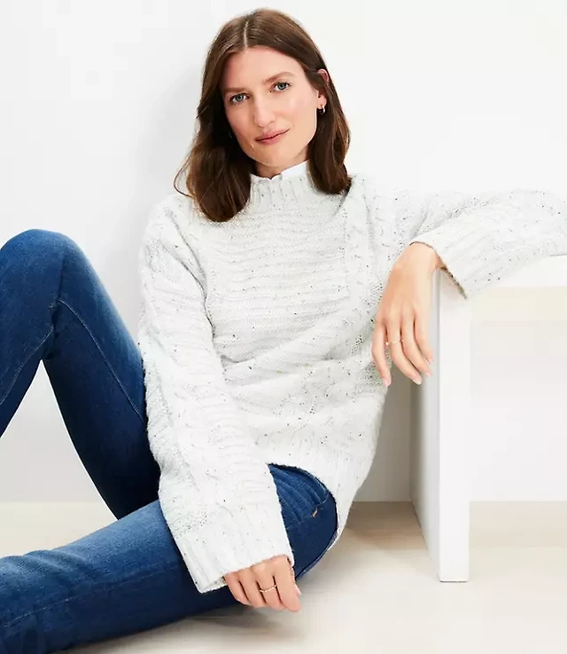 Flecked Cable Linked Mock Neck Tunic Sweater
