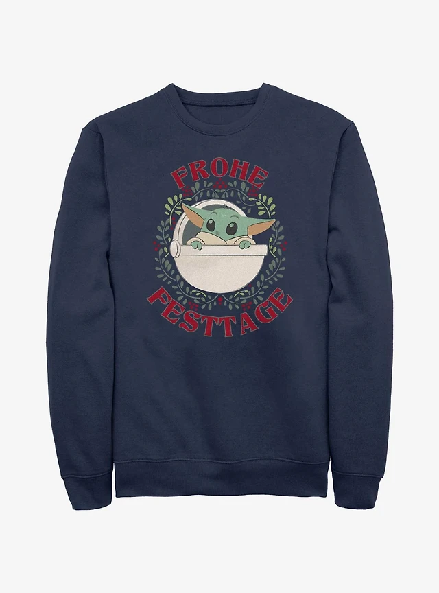 Star Wars The Mandalorian Grogu Wreath Happy Holidays In German Sweatshirt