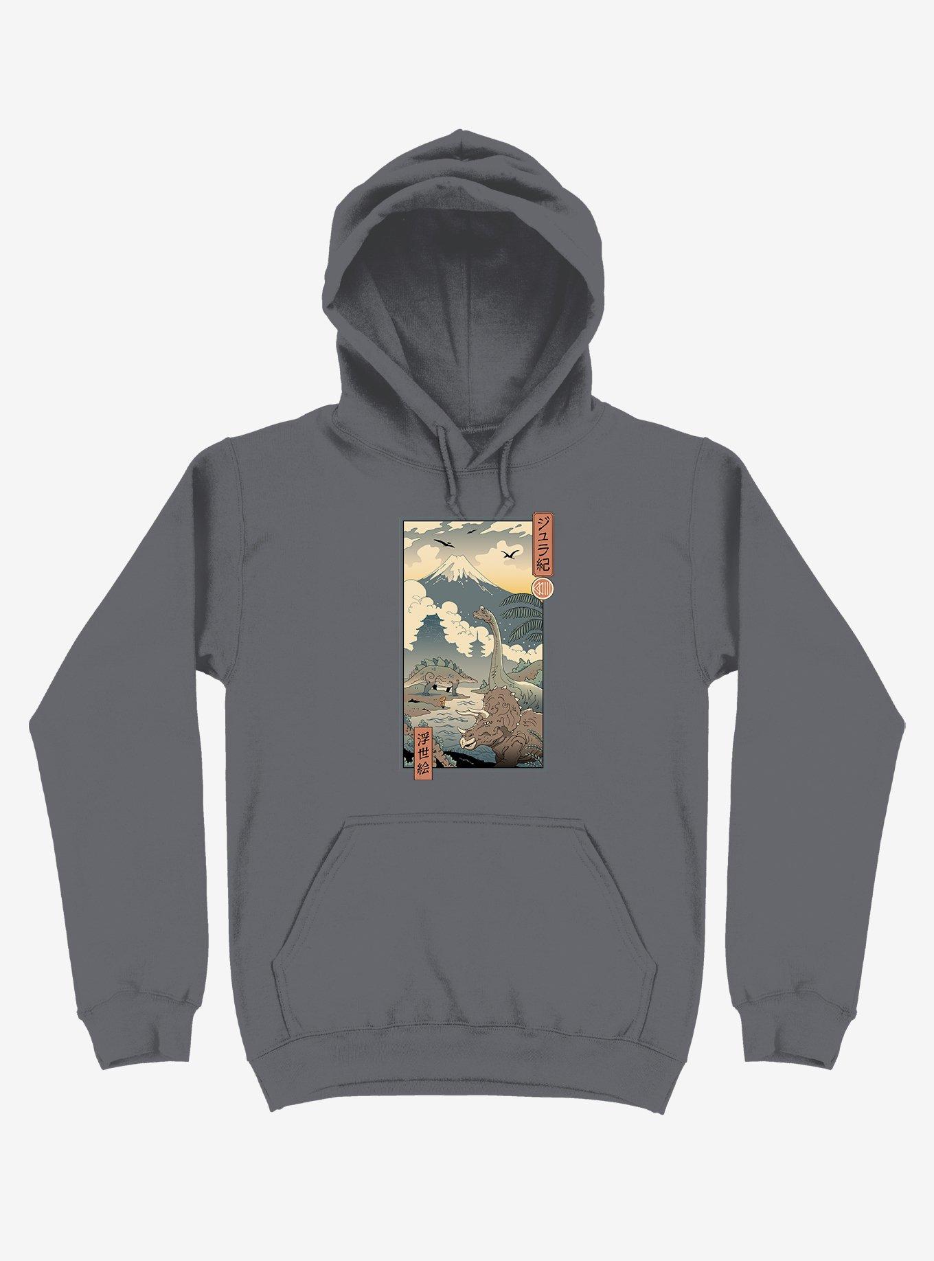Dinosaurs Jurassic Ukiyo-e Asphalt Grey Hoodie