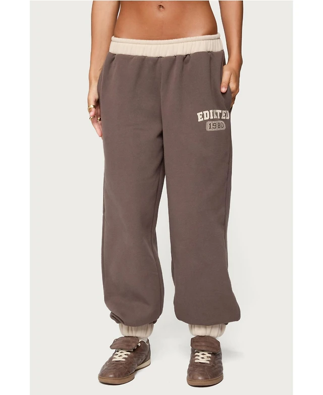 Edikted Womens Tamia Peekaboo Ruffle Lace Sweatpants