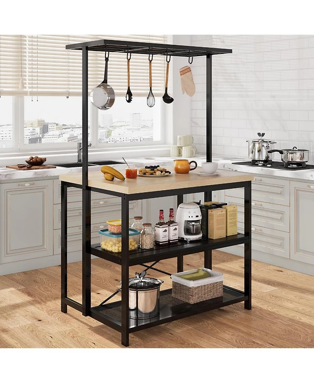 Yaheetech 50.5"H 4-Tier Metal & Particleboard 6 Hooks, Casters, Anti-Tilt Kit, Water-Resistant Kitchen Baker s Rack