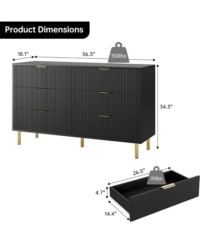 gaomon Modern 6-Drawer Dresser with Metal Handles, Wooden Storage Chest