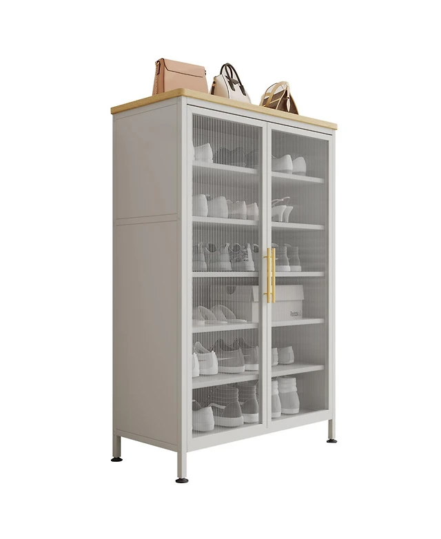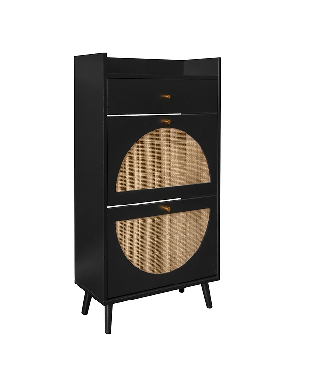 Tribesigns Shoe Cabinet with Doors and Drawer, Modern Shoe Storage Cabinet for Entryway, Rattan Wooden Shoe Organizer with Adjustable Shelf, Green
