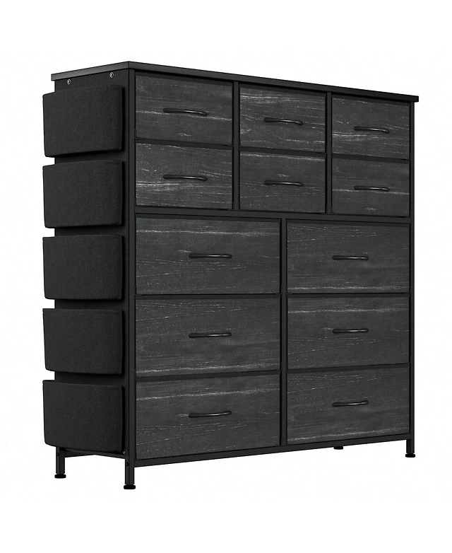 Wlive 10-Drawer Dresser Fabric Storage Tower for Bedroom Hallway Closets Tall Chest Organizer Unit with Textured Print Fabric Bins Steel Frame Wood To