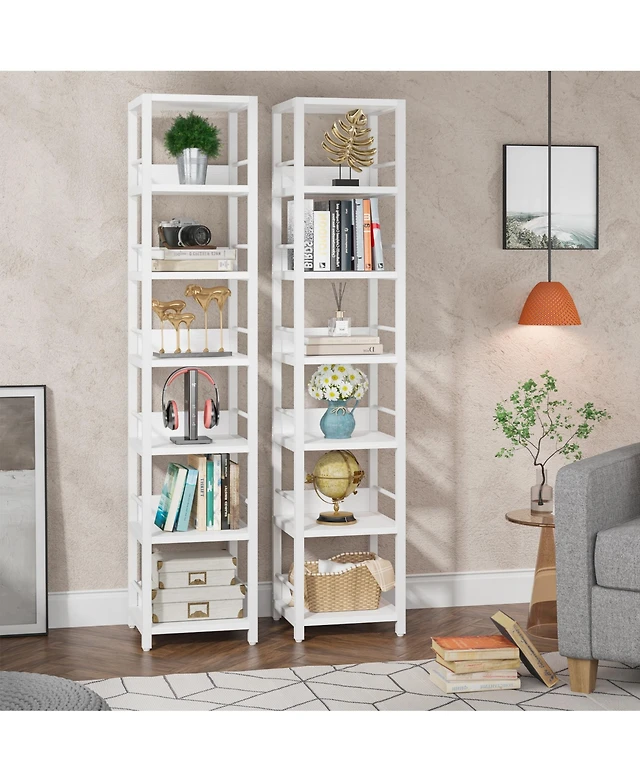 Tribesigns 6-Tier Corner Shelf Set of 2, 75 Inch Tall Narrow Bookshelf Storage Rack, Etagere Shelves Display Stand for Small Spaces, Rustic Open Bookc