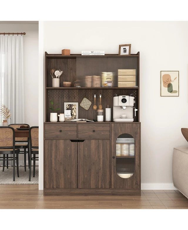 gaomon Corner Wine Bar Rack Cabinet with Detachable Wine Rack, Home Bar Cabinet with Barn Door and Adjustable Shelf