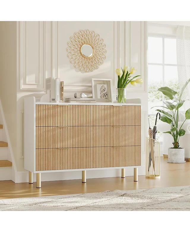 gaomon Rattan Drawer Dresser, 3 Wood Drawers Storage Cabinet Dresser for Bedroom, Living Room,Hallway,Bedside,Dining Room,Corridor,Bathroom