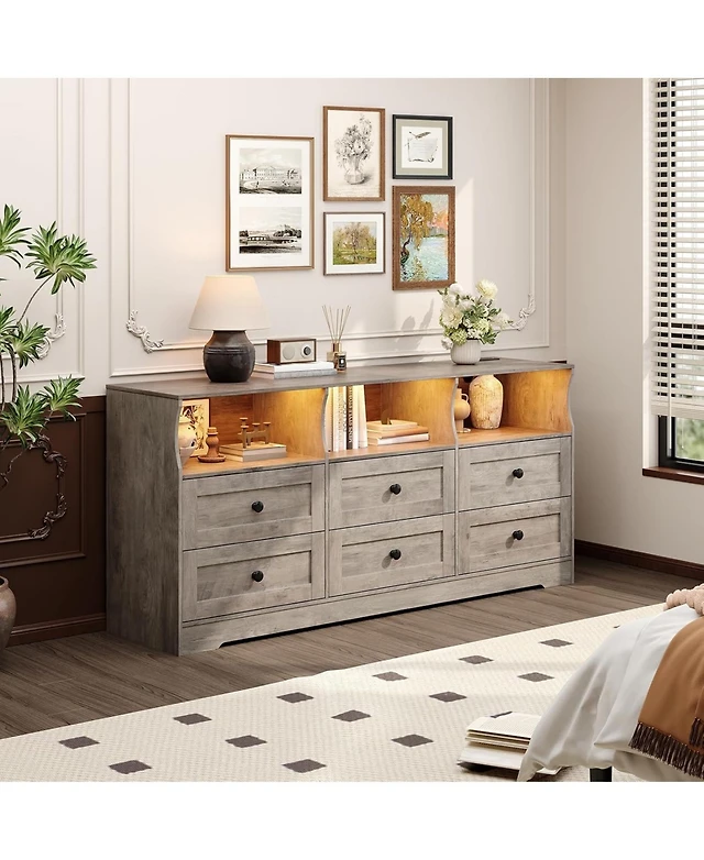 gaomon 6 Drawer Dresser for Bedroom Wide Modern Wood Chest with Metal Handles Storage Organizer