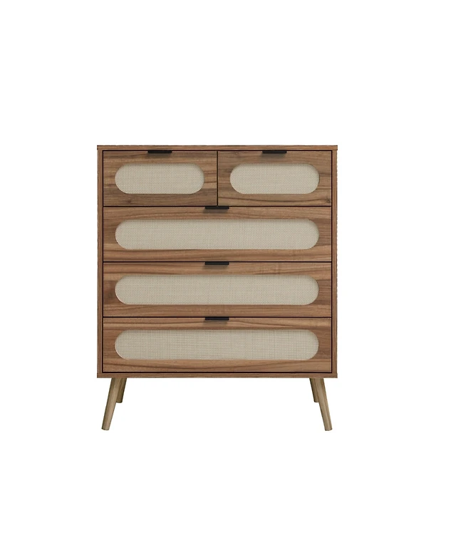 gaomon Tall Fluted Dresser, 5 Drawer Modern Wood Storage Chest for Living Room or Entryway