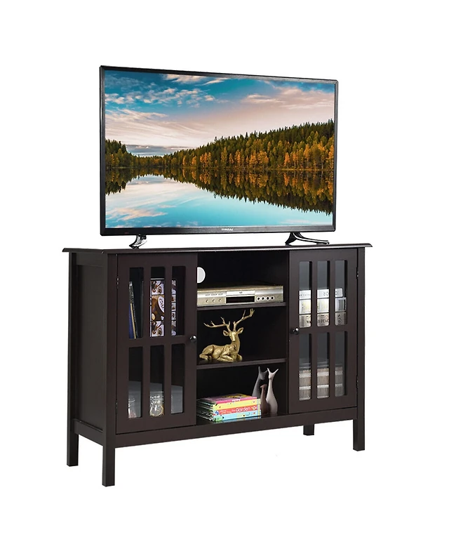 Gymax Wood Tv Stand Entertainment Media Center Console for Tv up to 50'' Brown