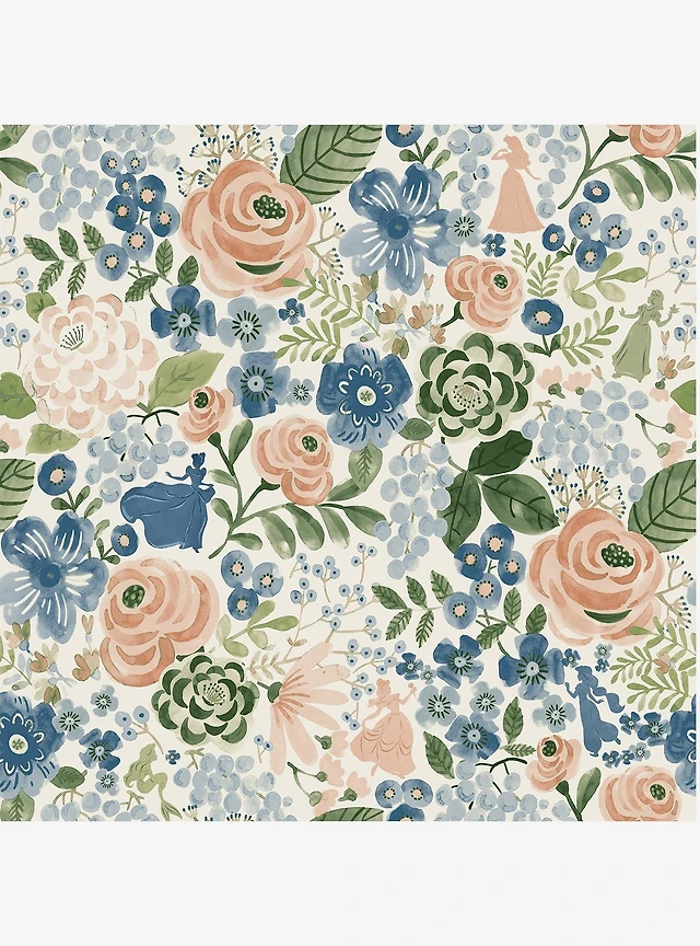 Disney Princesses Blue Watercolor Floral Peel & Stick Wallpaper