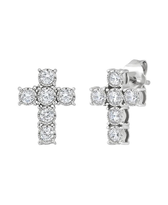 Steeltime Women's Stainless Steel 2 Pieces Simulated Diamond Stud and Simulated Diamond Huggie Earrings Set