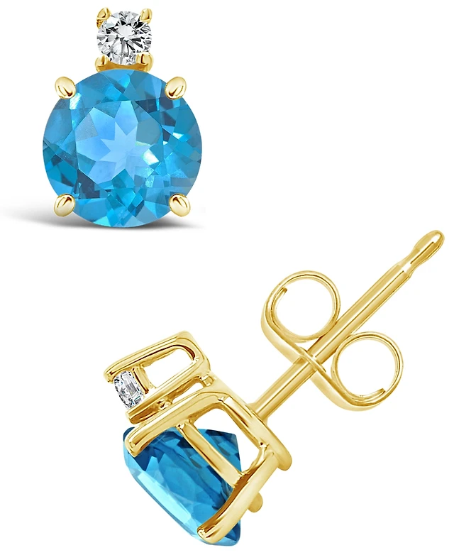 Effy Collection London Blue Topaz (2-1/2 ct. t.w.) & Diamond (1/10 ct. t.w.) Earrings in 14k Yellow Gold