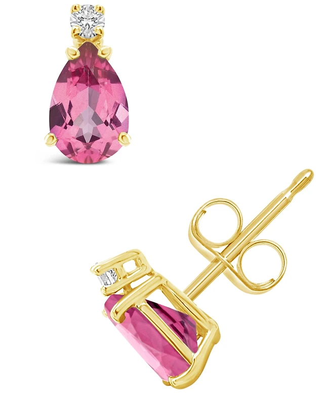 Pear-Shaped Pink Tourmaline and 1/15 CT. T.w. Lab-Grown Diamond Huggie Hoop Earrings in 10K Gold (F/Vs2)