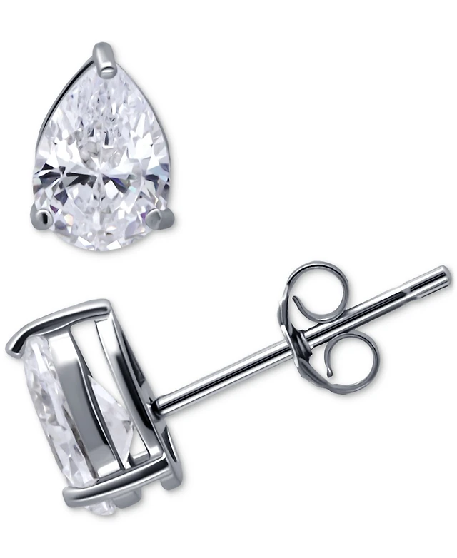 Pear-Shaped Lab-Created White Sapphire Frame Pendant and Stud Earrings Set in Sterling Silver