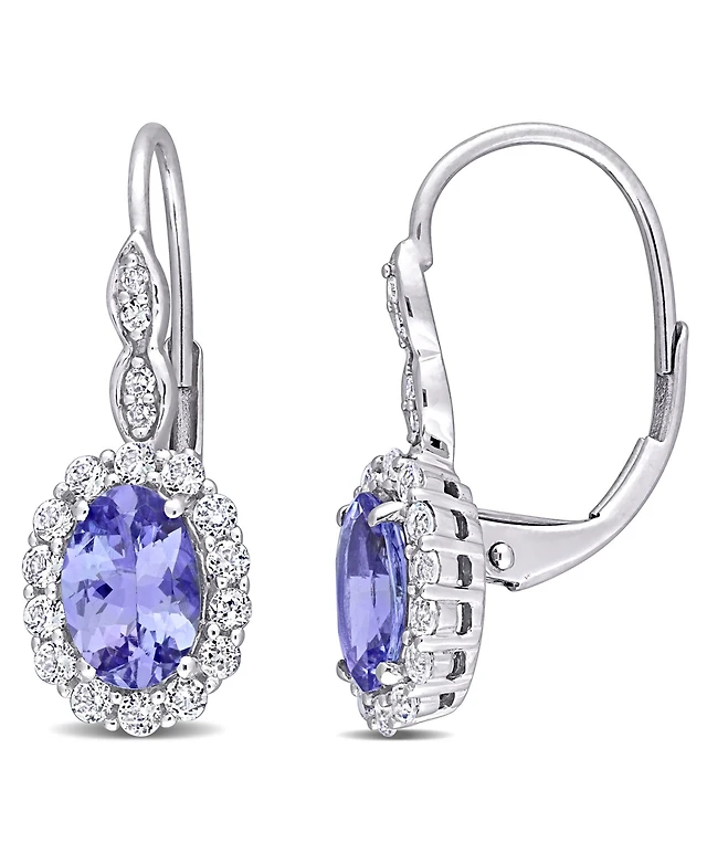 14k White Gold Earrings, Blue Topaz (16 ct. t.w.) and Diamond Leverback Earrings
