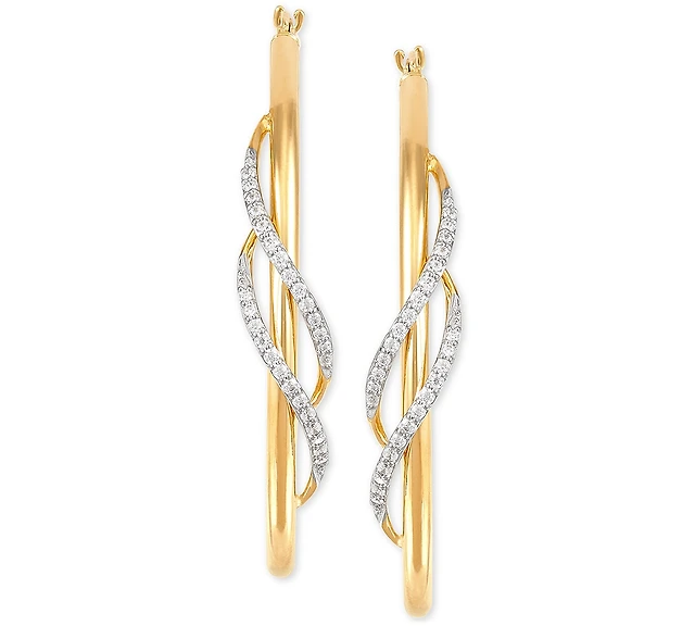 Macy's Diamond Bar Box Chain J-Hoop Earrings (1/4 ct. t.w.) in 14k Gold Over Sterling Silver