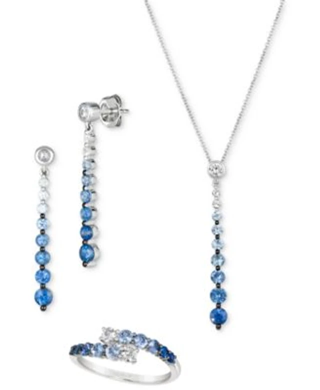 2028 14K Gold-tone Light Blue Oval Crystal Earrings