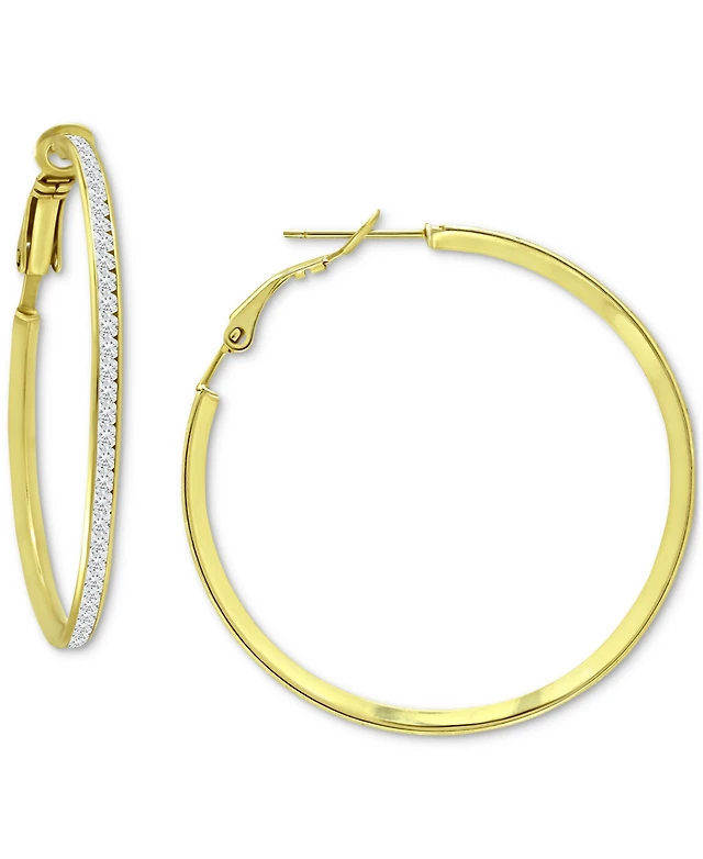 AVA Nadri Crystal Bezel-Set Inside-Out Hoop Earrings in Brass with 18K Gold Plate