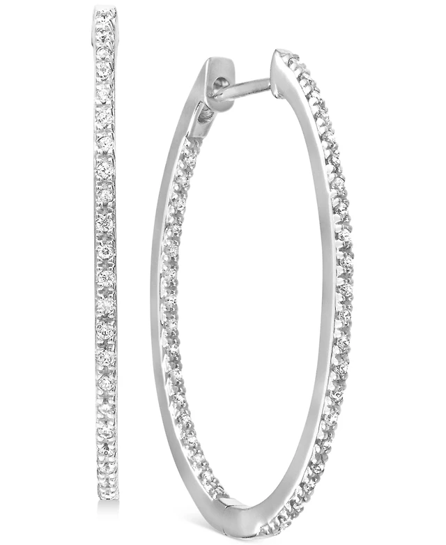 Effy Lab Grown Diamond Small Hoop Earrings (1-5/8 ct. t.w.) in 14k White Gold, 0.79"