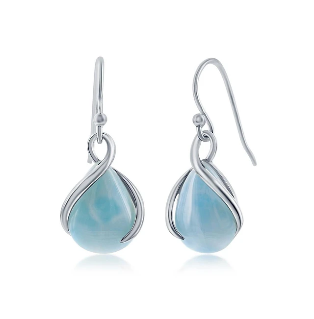 Caribbean Treasures Sterling Silver Half Infinity Design Round Larimar Dangle Earrings