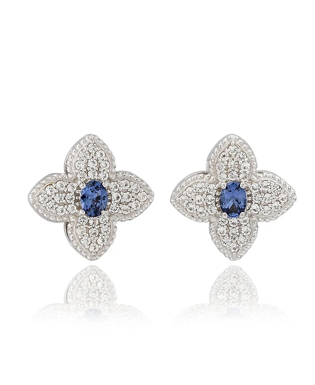 Suzy Levian Sterling Silver Emerald Cut Sapphire & Created White Halo Stud Earrings