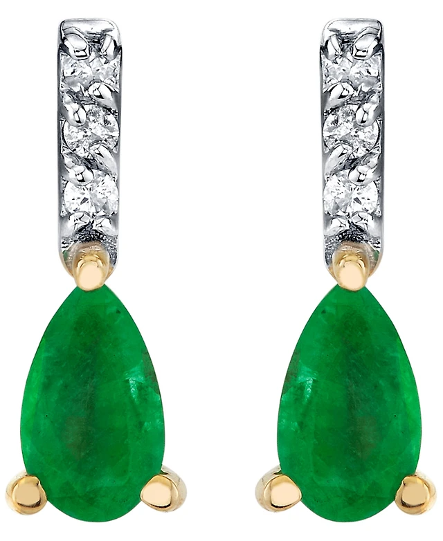 Macy's Emerald (1-1/4 ct. t.w.) and Diamond Accent Drop Earrings in 10k Yellow Gold