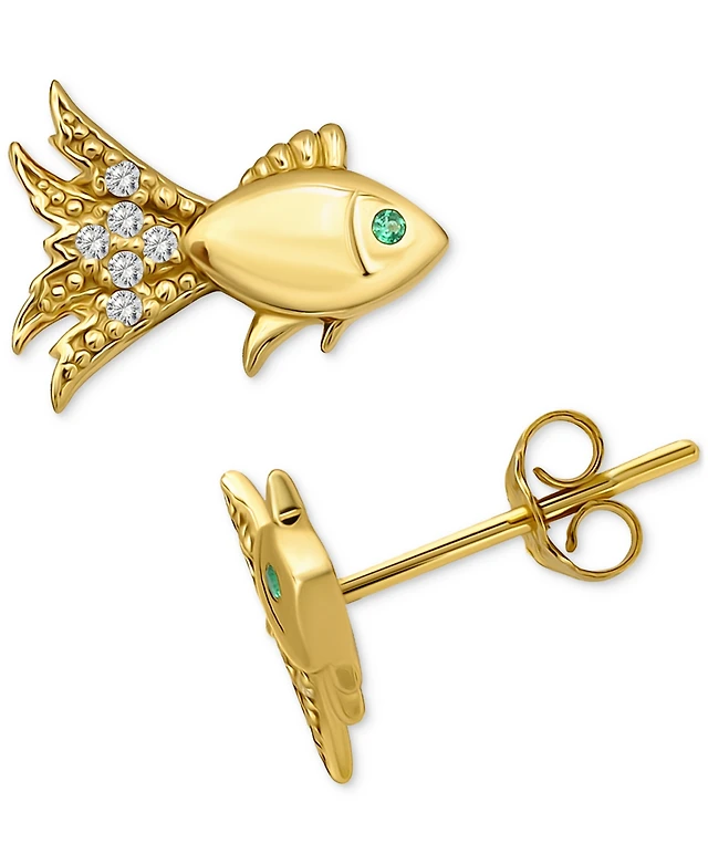Giani Bernini Lab-Created Green Quartz & Cubic Zirconia Fish Stud Earrings 18k Gold Over Sterling Silver, Exclusively at Macy's (Also Available