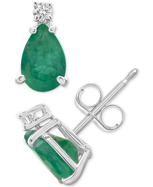 Emerald (1-1/5 ct. t.w.) & Diamond (1/6 ct. t.w.) Stud Earrings (3/8 ct. t.w.) in 14k Gold