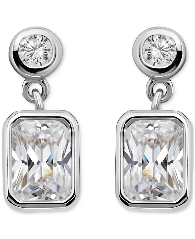 Bling Jewelry Art Deco Style Square Cubic Zirconia Rectangle Emerald Cut Cz Drop Earrings Rhodium Plated Omega Back
