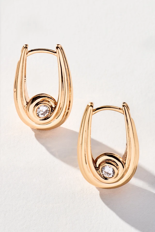 14k Gold-Plated Runway Huggie Earrings, 0.5"