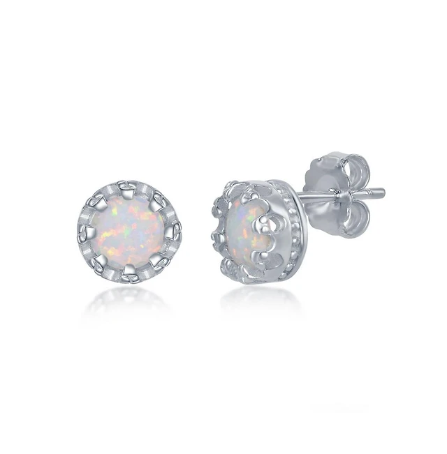 Sterling Silver Prong Synthetic Opal Earrings