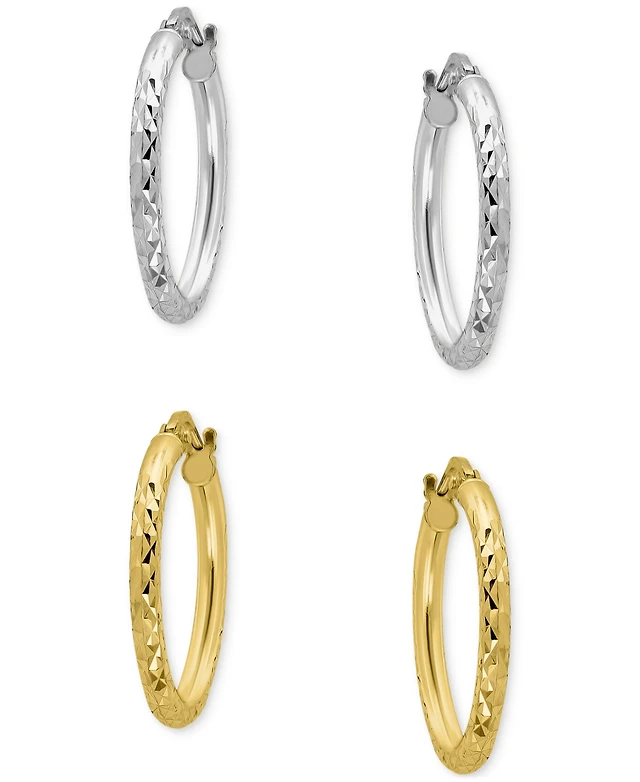 Giani Bernini 2-Pc. Set Faceted Textured Small Hoop Earrings, 0.75", Macy's Exclusive