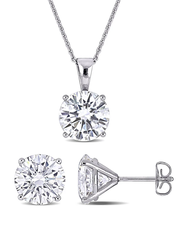 2-Pc Set Cubic Zirconia X Pendant Necklace & Solitaire Stud Earrings Sterling Silver (Also available 14k Gold over