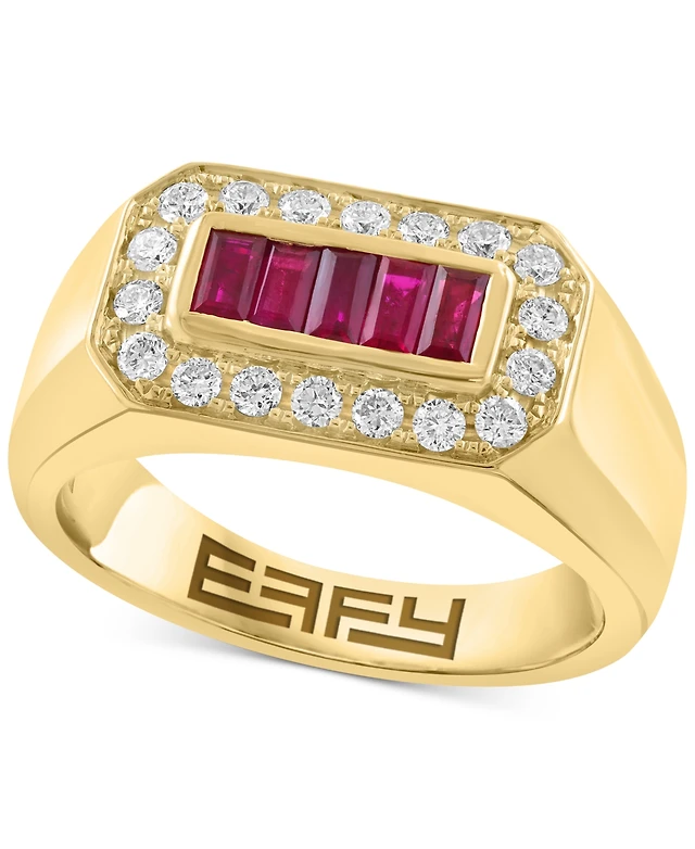 Effy Men's Ruby (5/8 ct. t.w.) Diamond (3/8 ct. t.w.) Baguette Halo Ring in 14k Gold