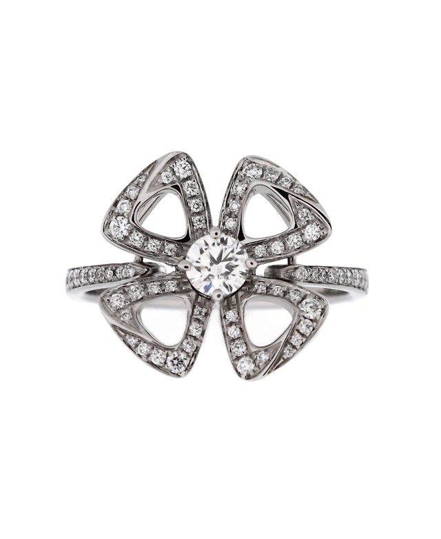 Pre-Owned Bvlgari Small Fiorever Ring 18K White Gold and Pave Diamonds