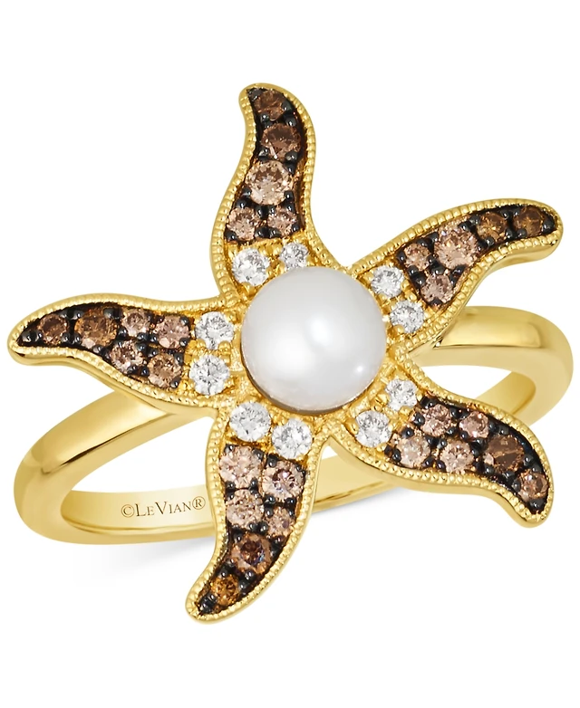 Le Vian Freshwater Pearl (5-1/2 ct. t.w.) & Chocolate Ombre Diamond (1/3 ct. t.w.) Starfish Ring in 14k Gold