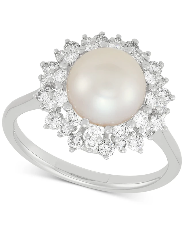 Grown With Love Cultured Freshwater Pearl (8mm) & Lab Grown Diamond (3/4 ct. t.w.) Statement Ring in 14k White Gold
