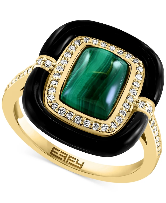 Emerald and 1/7 CT. T.w. Diamond Fan Ring in 10K White Gold