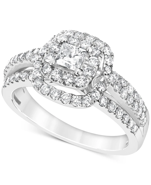 Previously Owned - 1-3/4 CT. T.w. Quad Princess-Cut Diamond Frame Engagement Ring in 14K White Gold