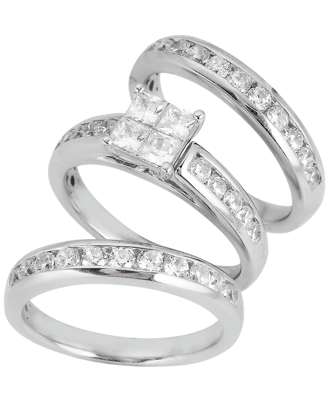 1/2 CT. T.w. Princess-Cut Diamond Cushion Double Frame Bridal Set in Sterling Silver