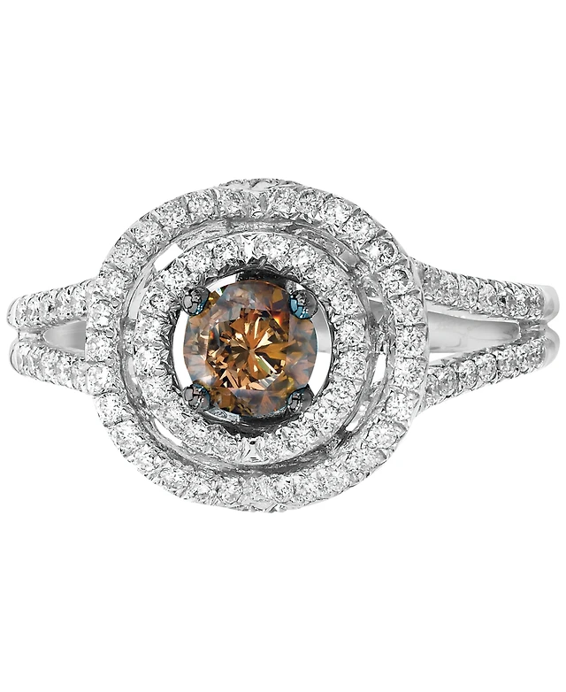 Le Vian Chocolate Diamond (3/8 ct. t.w.) & Vanilla Diamond (3/8 ct. t.w.) Double Halo Ring in 18k White Gold