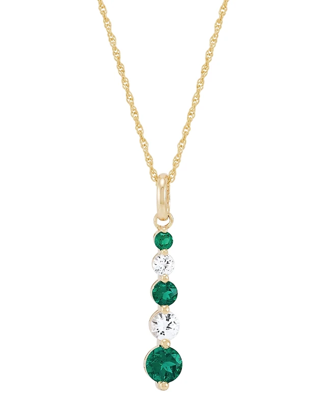 Oval Lab-Created Emerald Pendant with Diamond Accents in 10K Gold