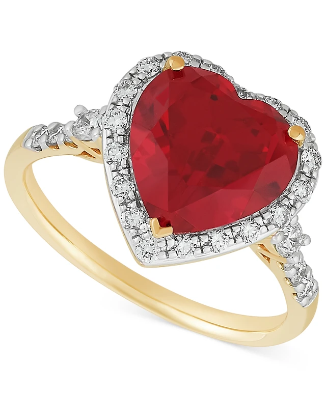 Lab-Created Ceylon Sapphire Heart Ring in 10K White Gold with Diamond Accents