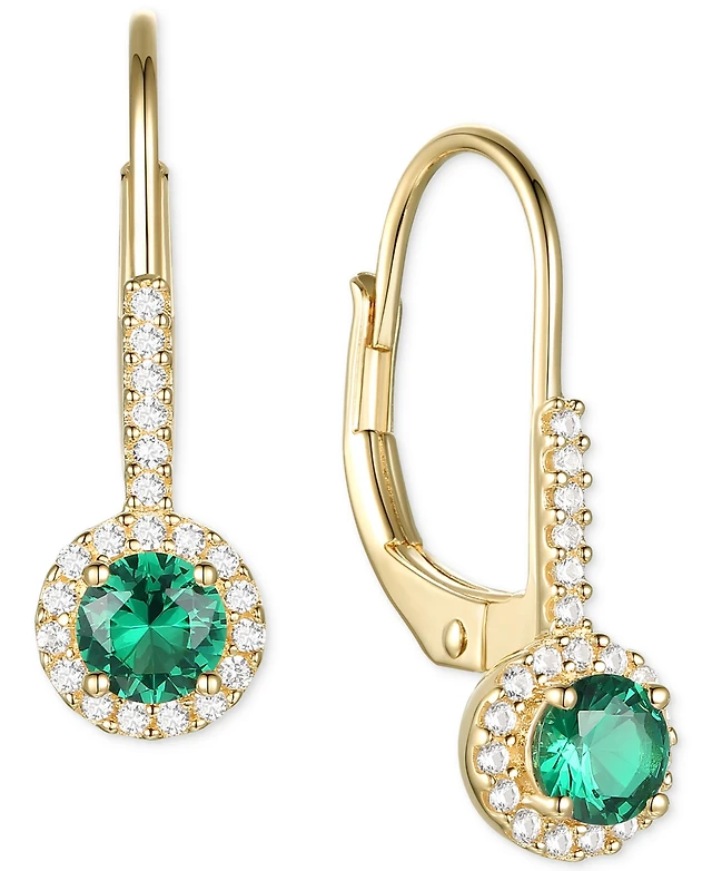 Lab-Grown Emerald (2-1/4 ct. t.w.) & Lab-Grown White Sapphire (5/8 ct. t.w.) Halo Ring in 14k Gold-Plated Sterling Silver