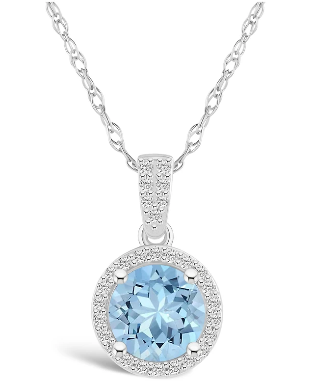 Macy's Lab Grown Spinel Aquamarine (1-2/5 ct. t.w.) and Lab Grown Sapphire (1/6 ct. t.w.) Halo Pendant Necklace in 10K White Gold