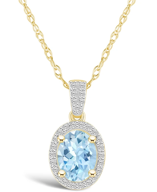 Lab Grown Spinel Aquamarine (1-1/4 ct. t.w.) and Lab Grown White Sapphire (1/6 ct. t.w.) Halo Pendant Necklace in 10K Yellow Gold